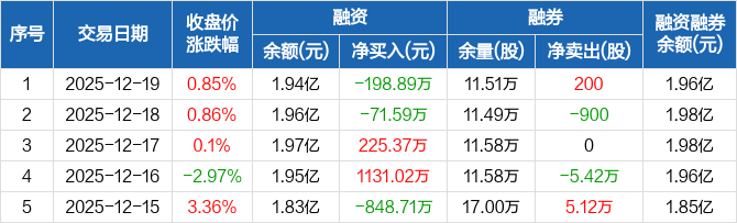 中谷物流:融资净偿还198.89万元,融资余额1.94亿元(12-19)