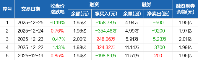 中谷物流:融资净偿还158.78万元,融资余额1.95亿元(12-25)