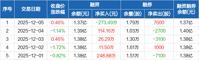 普莱柯:融资净偿还273.49万元,融资余额1.37亿元(12-05)