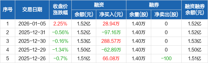普莱柯:融资净买入28.94万元,融资余额1.52亿元(01-05)