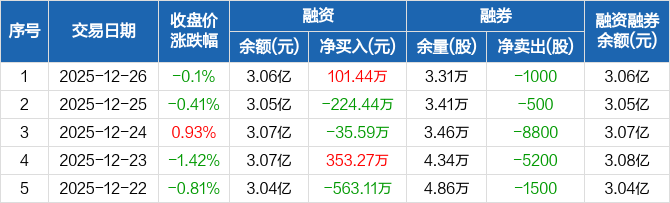 珍宝岛:融资净买入101.44万元,融资余额3.06亿元(12-26)