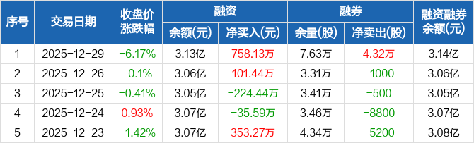 珍宝岛:融资净买入758.13万元,融资余额3.13亿元(12-29)