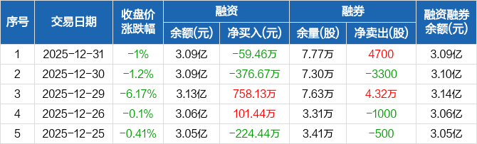 珍宝岛:融资净偿还59.46万元,融资余额3.09亿元(12-31)