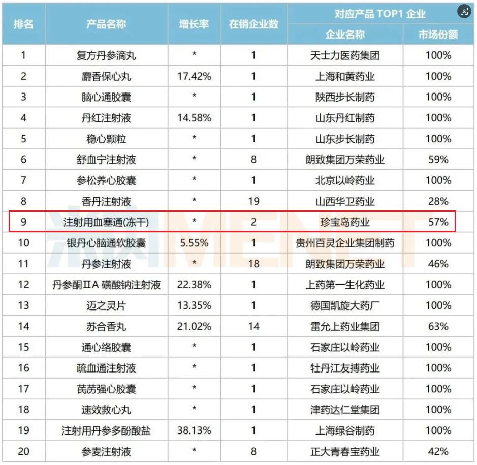 2025Q1-Q3中国公立医疗机构终端心脑血管疾病中成药TOP20产品