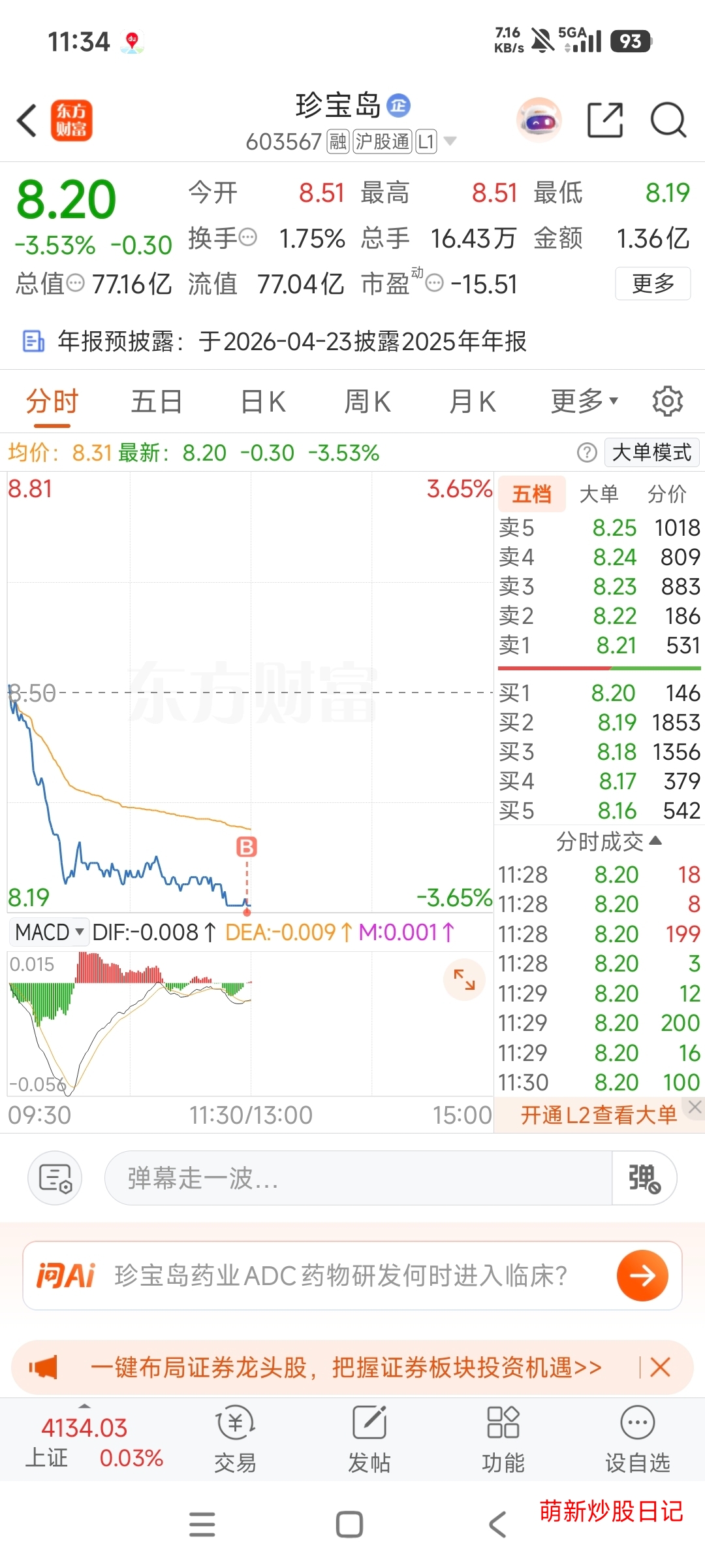 $珍宝岛(SH603567)$ 今天开始建仓珍宝岛,看看做短线能不能吃一个反弹,珍宝岛公司本身应该没什么问题,药品进入医保销量也有保障,但是最近股价却是一直再跌,市场用脚投票,老玩家应该亏损不少,但是现在建仓的话,问题应该不大,越跌越买吧,吃一个反弹就走