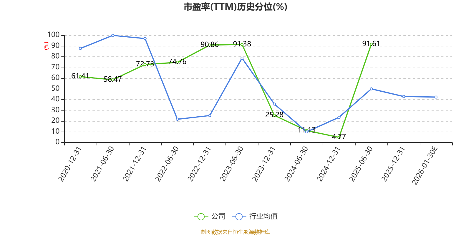 市盈率、市净率为负时,不显示当期分位数,会导致折线图中断。