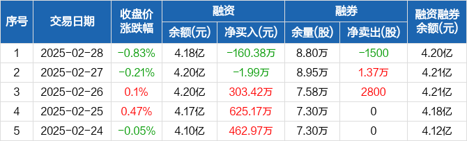 伟明环保:融资净偿还160.38万元,融资余额4.18亿元(02-28)