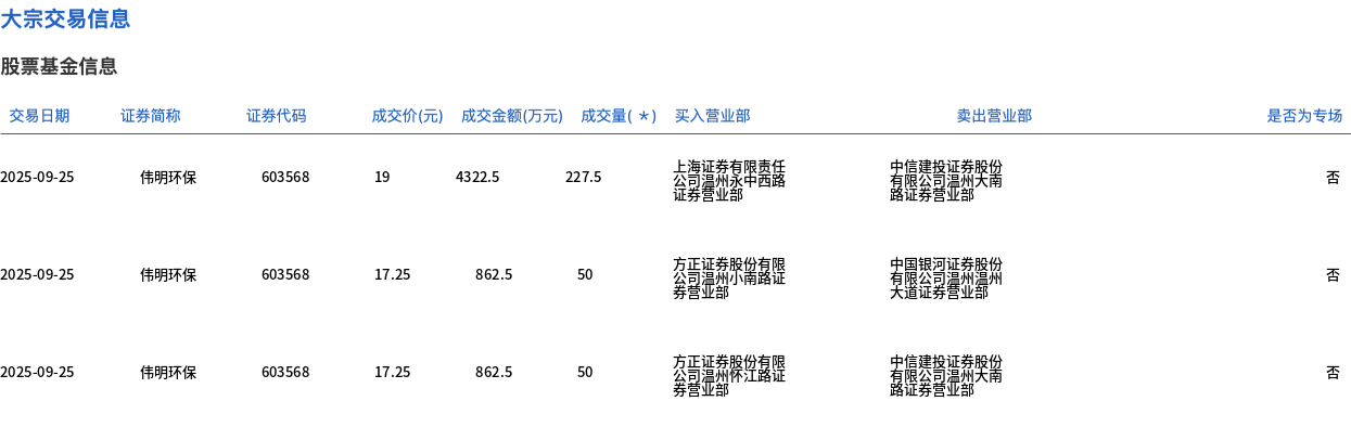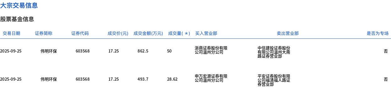 伟明环保今日大宗交易成交406.12万股,成交额7403.7万元