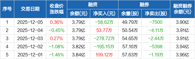 伟明环保:融资净偿还58.62万元,融资余额3.79亿元(12-05)