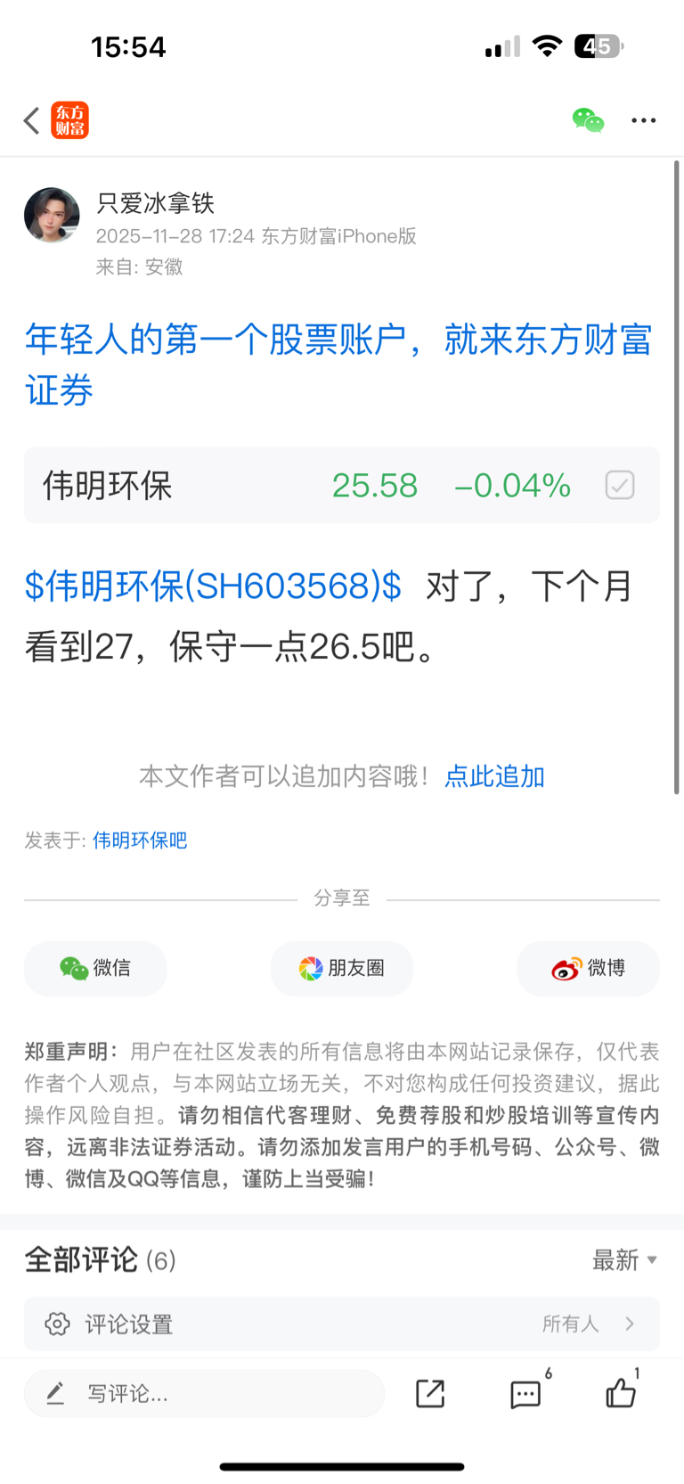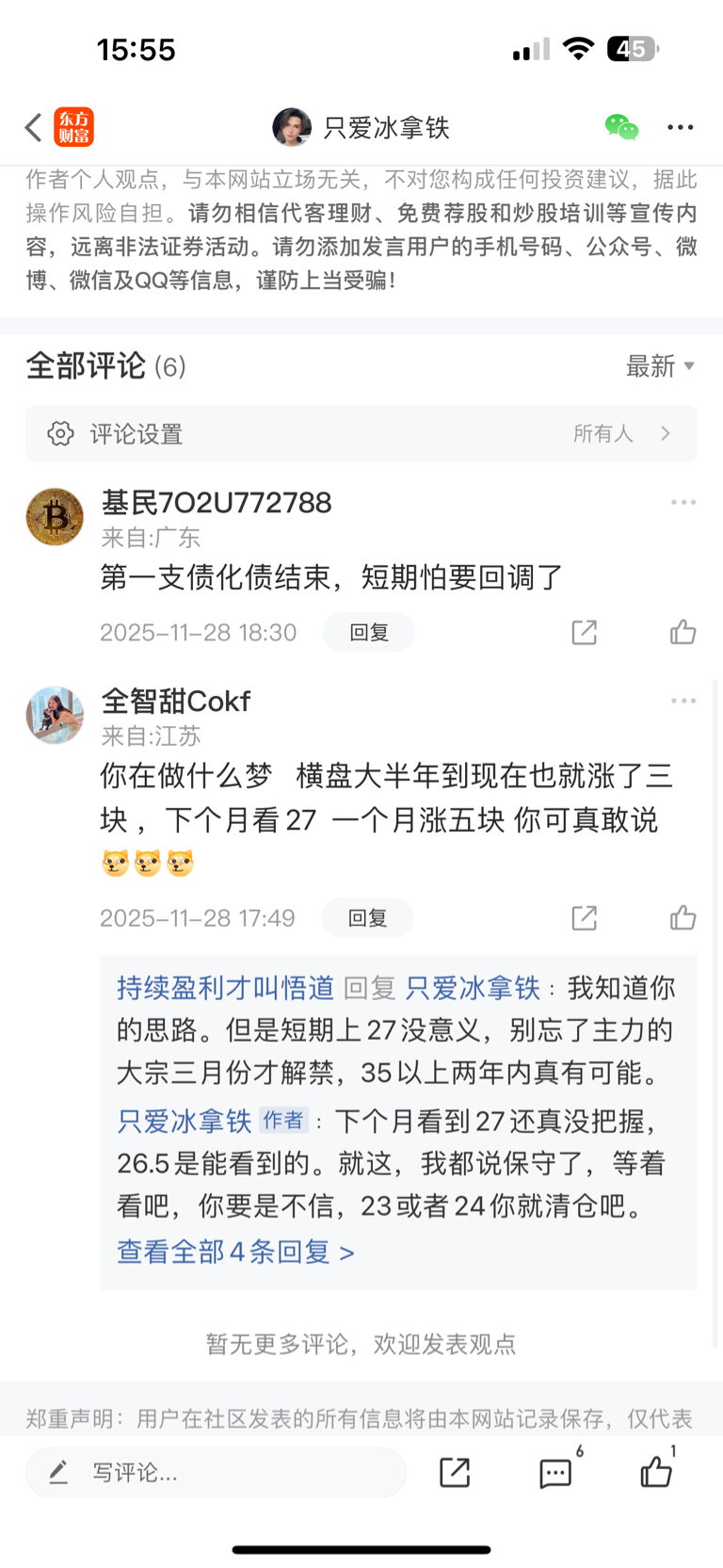 温馨提示: 1.根据《证券法》规定,禁止编造、传播虚假信息或者误导性信息,扰乱证券市场;2.用户在本社区发表的所有资料、言论等仅代表个人观点,与本网站立场无关,不对您构成任何投资建议。用户应基于自己的独立判断,自行决定证券投资并承担相应风险。《东方财富社区管理规定》