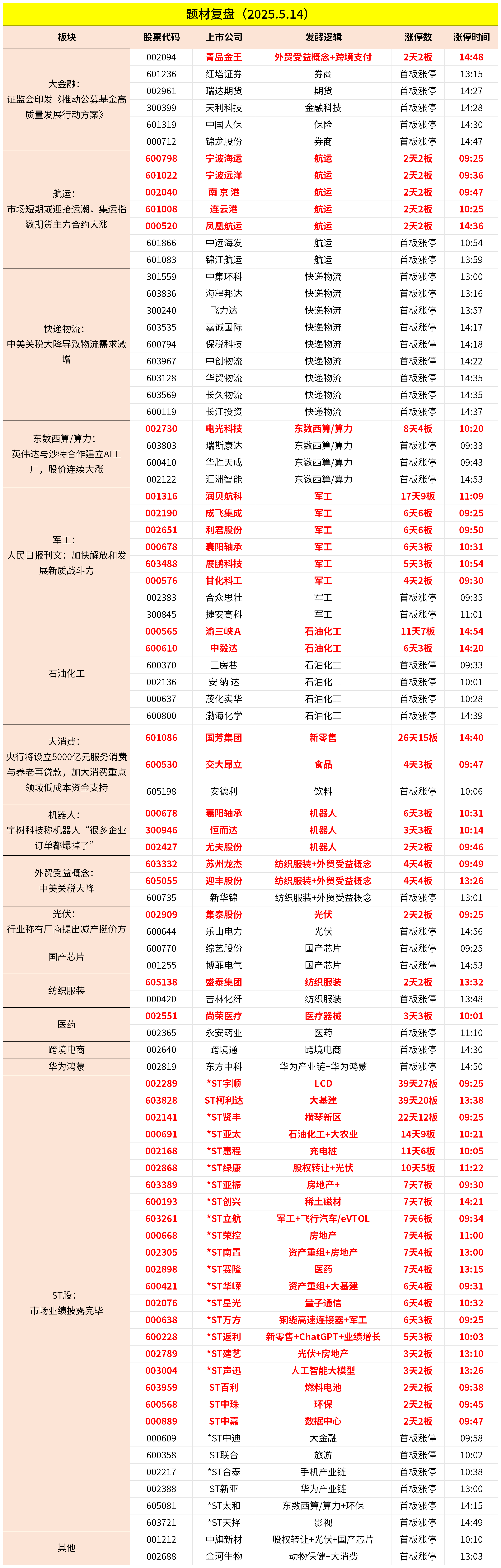 5月14日涨停池主题复盘
