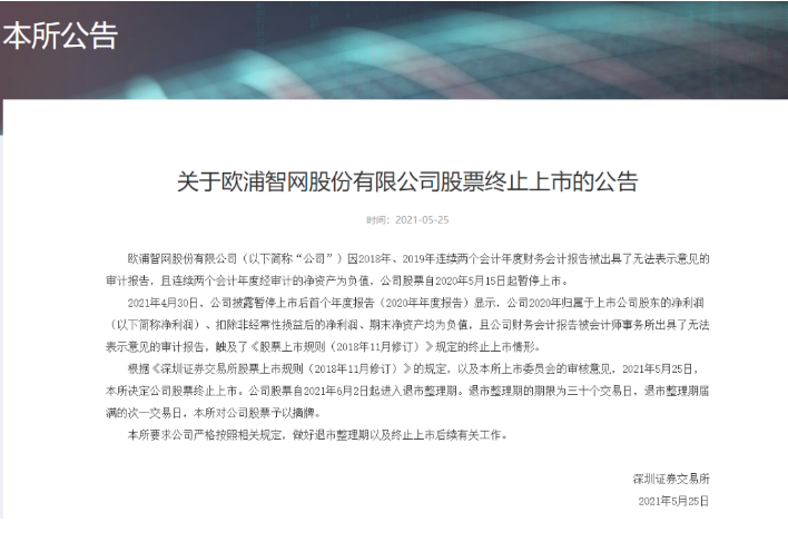 大股东持总股本47%的全国著名物流股欧浦智网也退市了!