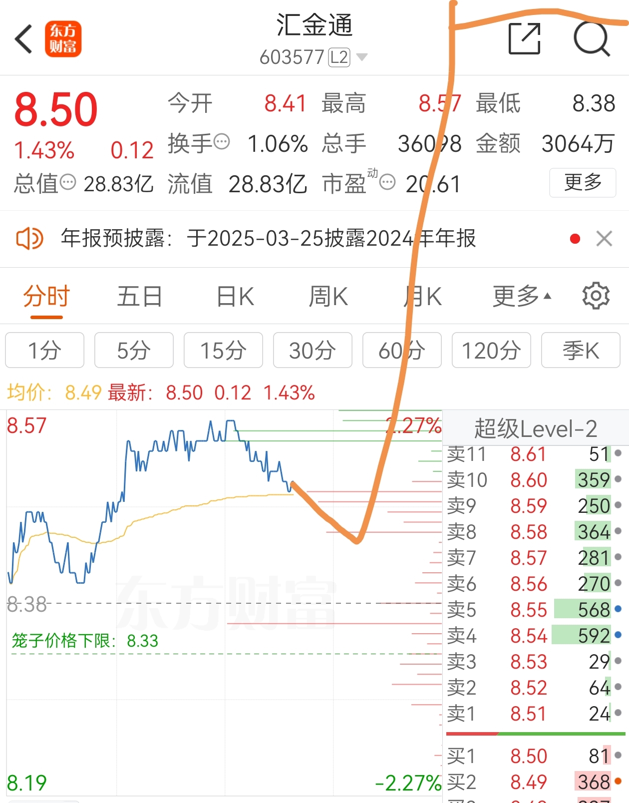 $汇金通(SH603577)$ 我给各位韭菜画一下下午的走势