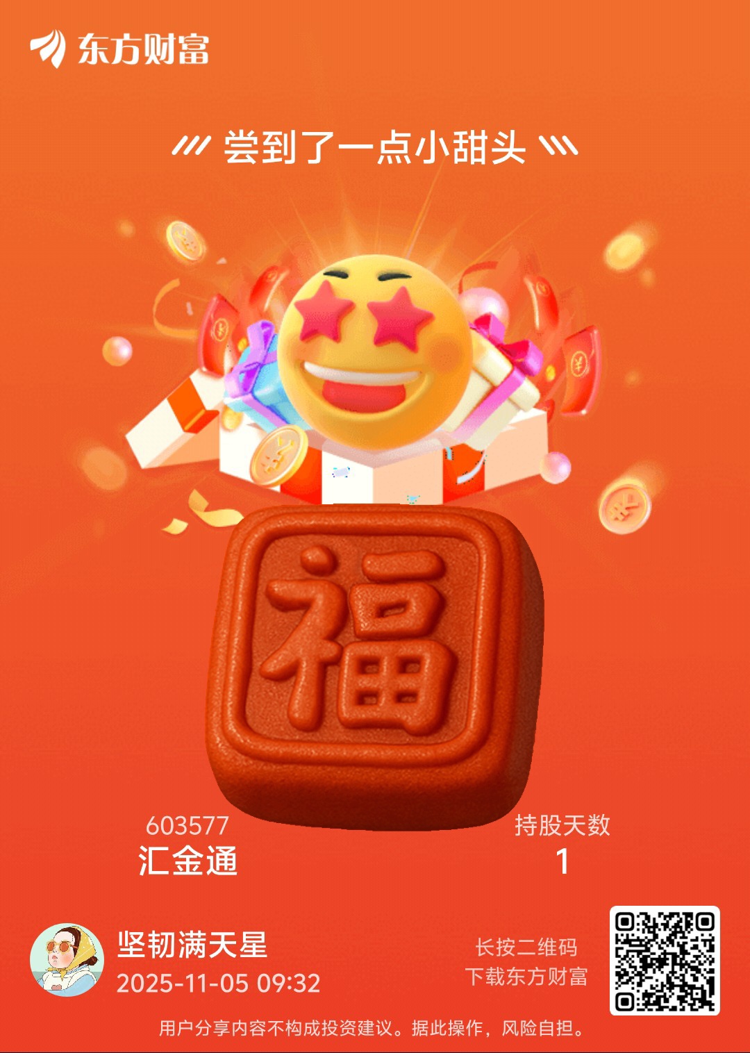 $汇金通(SH603577)$ 哪位大神预测下明天走势~