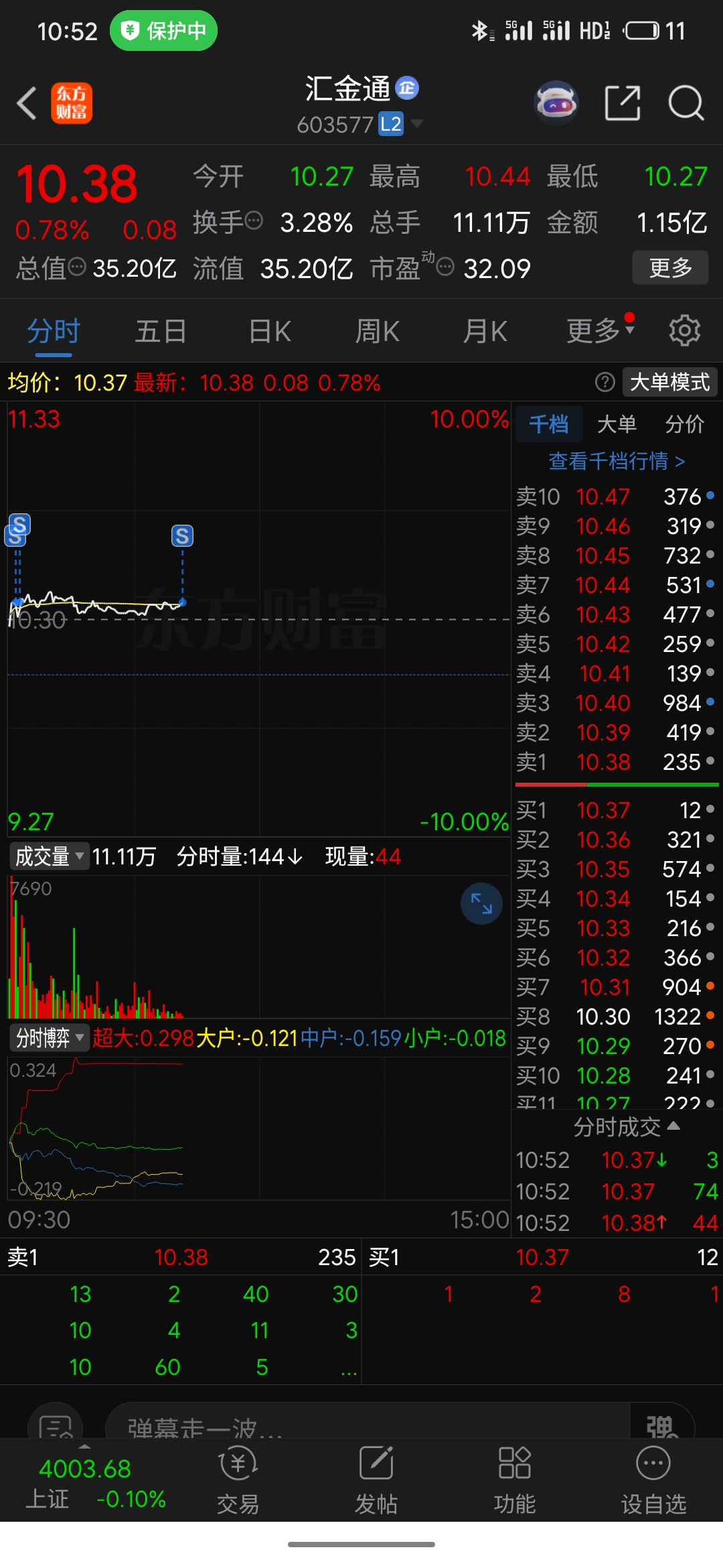 $汇金通(SH603577)$ 我卖了,你可以涨了