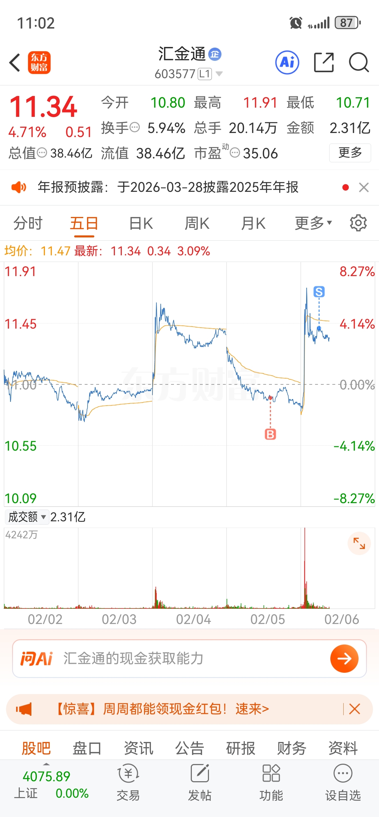 $汇金通(SH603577)$ 落袋为安了 ,也格局过了,感觉确实上不去了