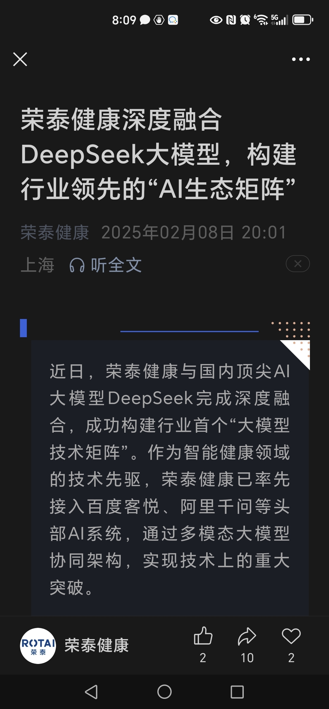 $荣泰健康(SH603579)$ 和deepseek合作了