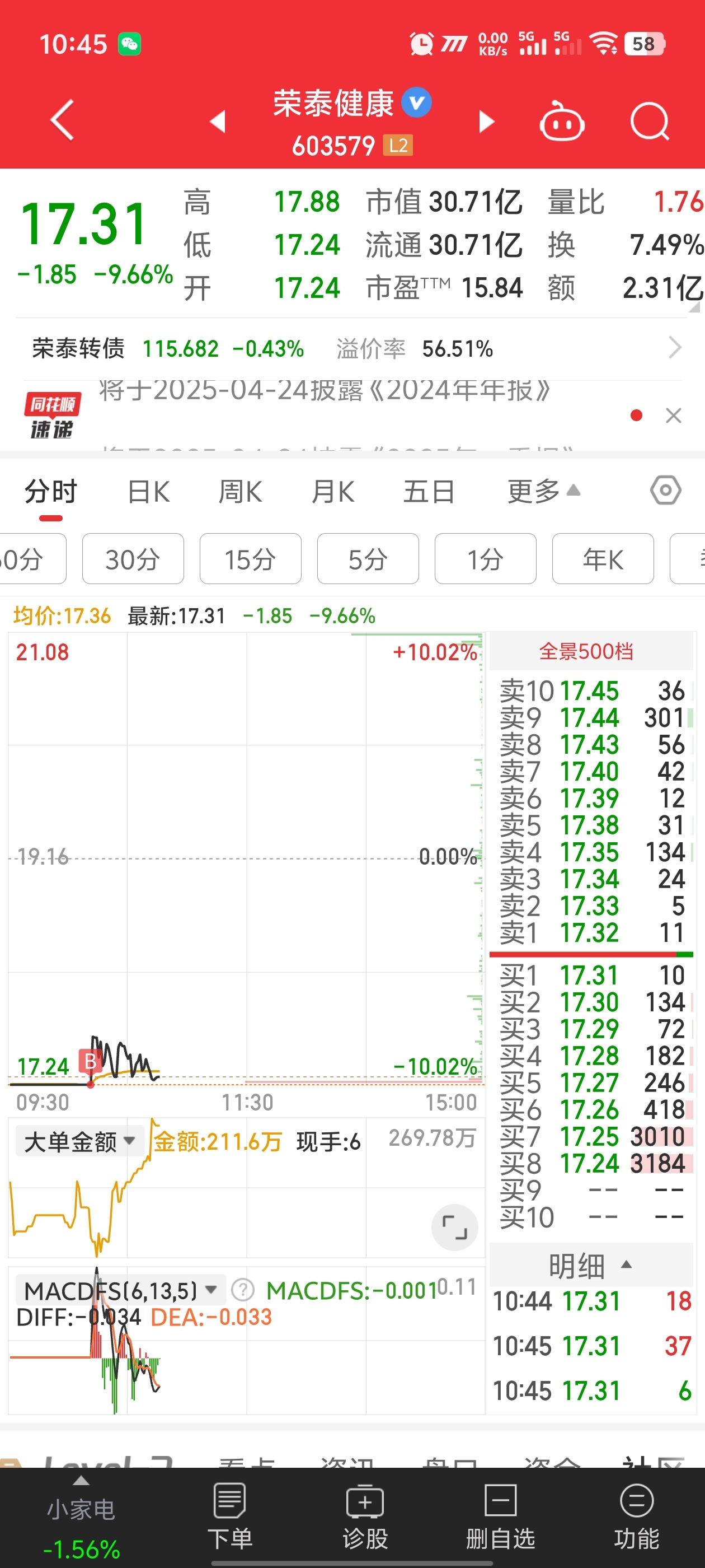 $荣泰健康(SH603579)$ 大单一直在吃什么时候吃够了什么时候拉升。