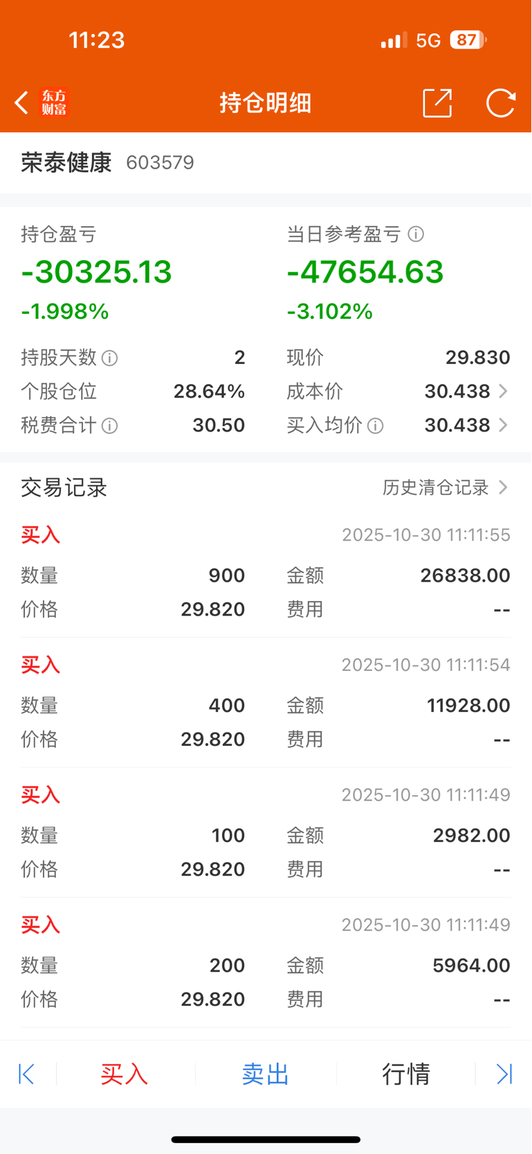 三季度业绩太差了,引发了跌停。加了点仓位。后续操作规则:亏损5万时,开始减仓。