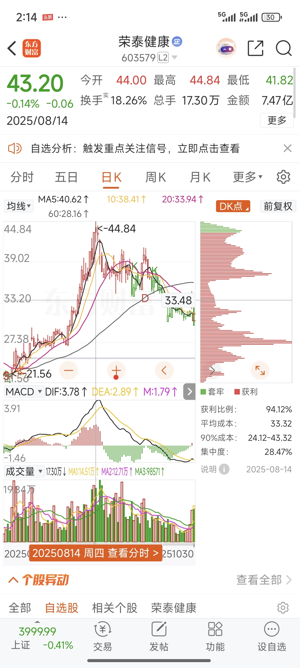 $荣泰健康(SH603579)$ 2025年8月14日,牛市结束