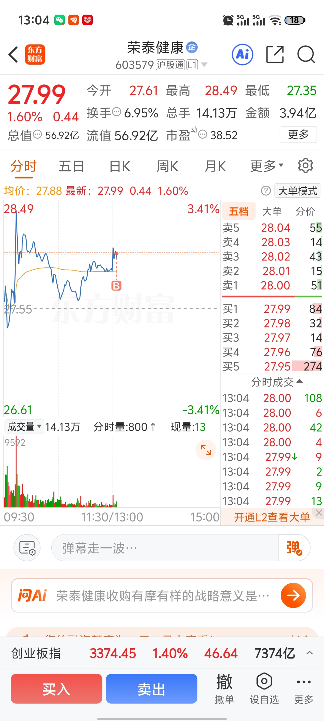 $荣泰健康(SH603579)$ 一买就套