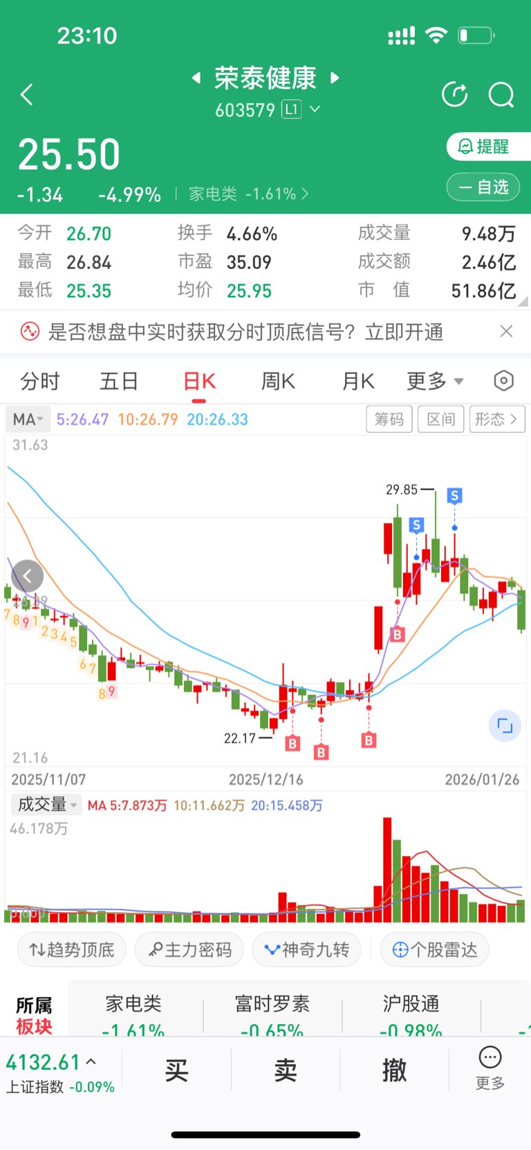 $荣泰健康(SH603579)$ 最高点没走,还以为回调一下走二波,一直在等买入机会,今天一看这架势估计要去补缺口去了!