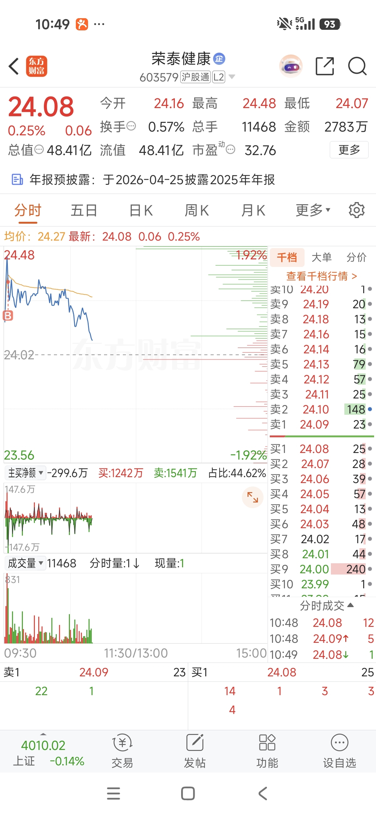 $荣泰健康(SH603579)$ 早上买的准备T的,歇菜,挂着了