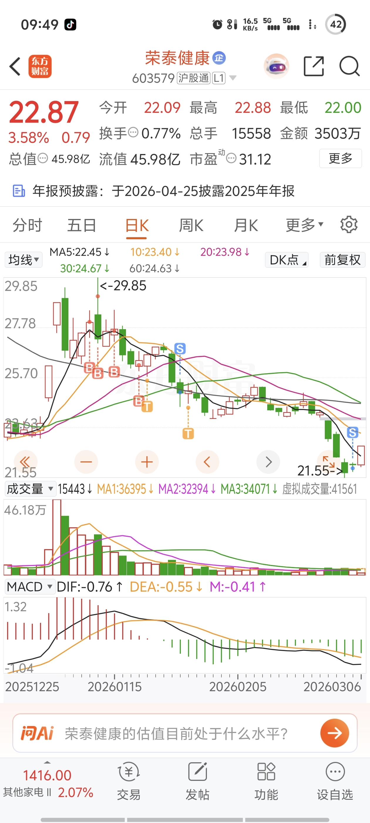 $荣泰健康(SH603579)$ 真搞笑。