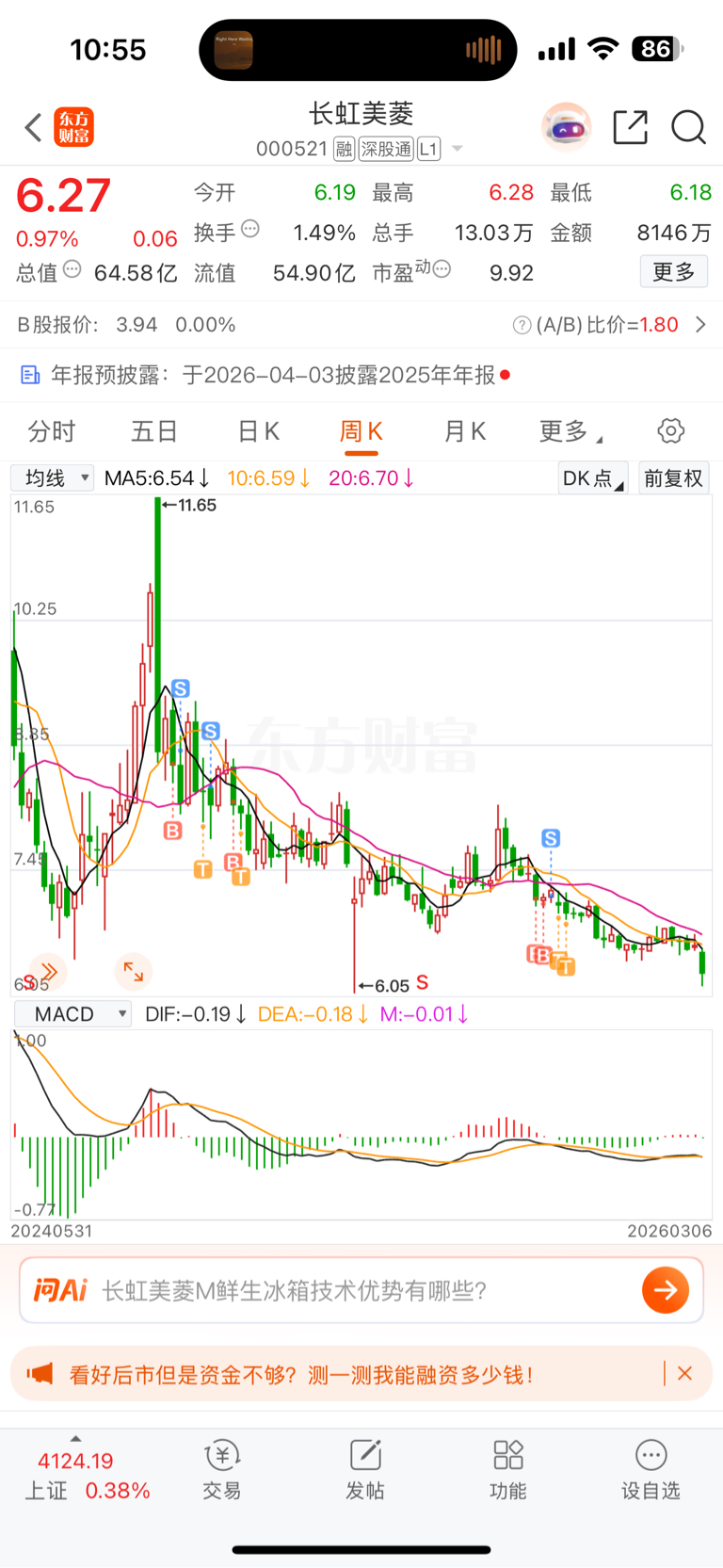 $荣泰健康(SH603579)$ 荣泰健康下跌趋势将和长虹美菱一个样