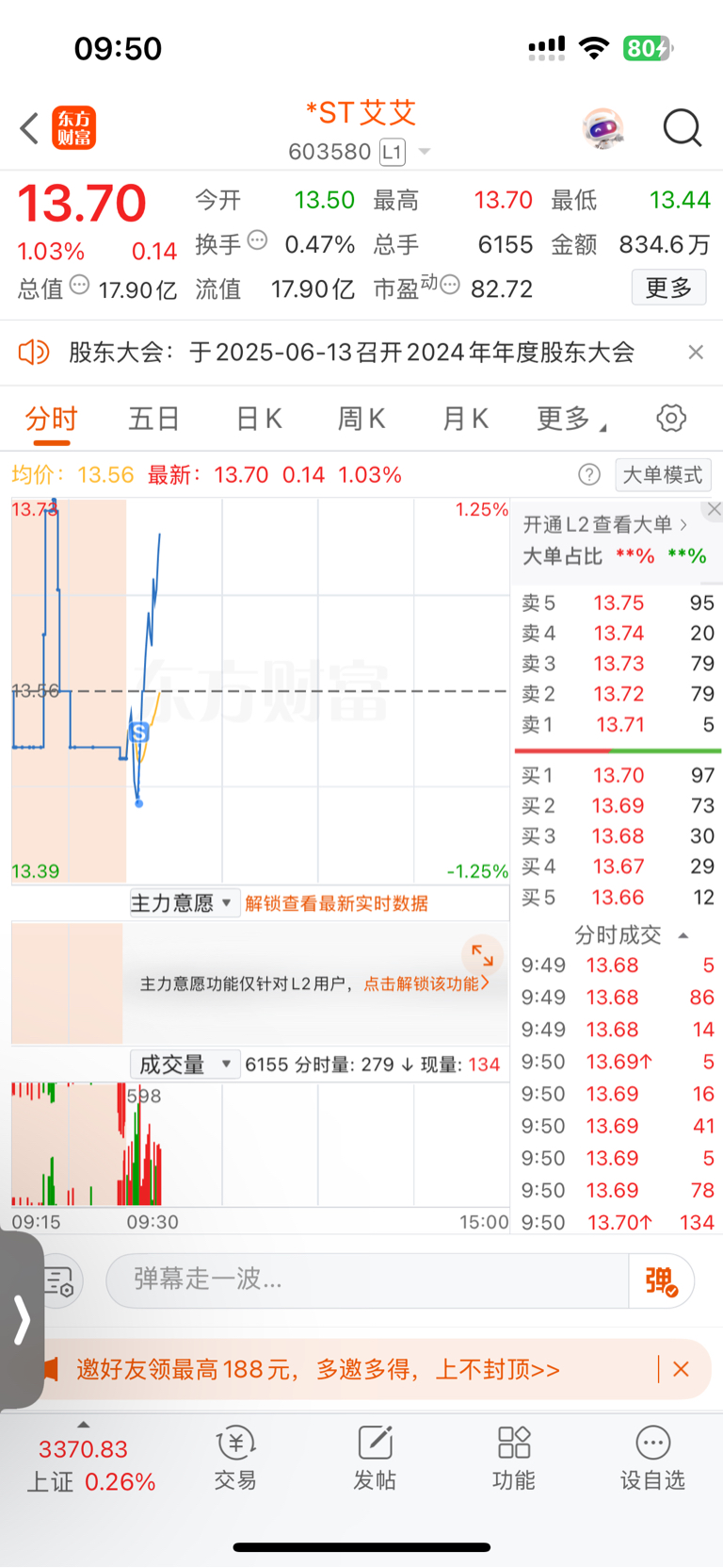 $*ST艾艾(SH603580)$