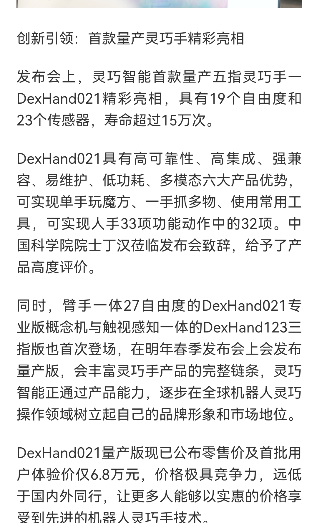 灵巧智能DexHand021灵巧手已经量产发布了啊,售价不到7万。