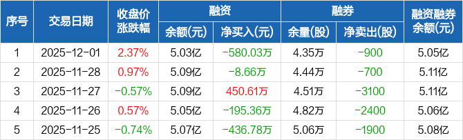 捷昌驱动:融资净偿还580.03万元,融资余额5.03亿元(12-01)
