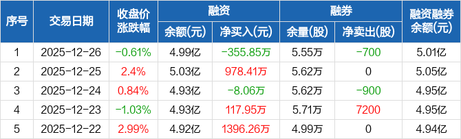 捷昌驱动:融资净偿还355.85万元,融资余额4.99亿元(12-26)
