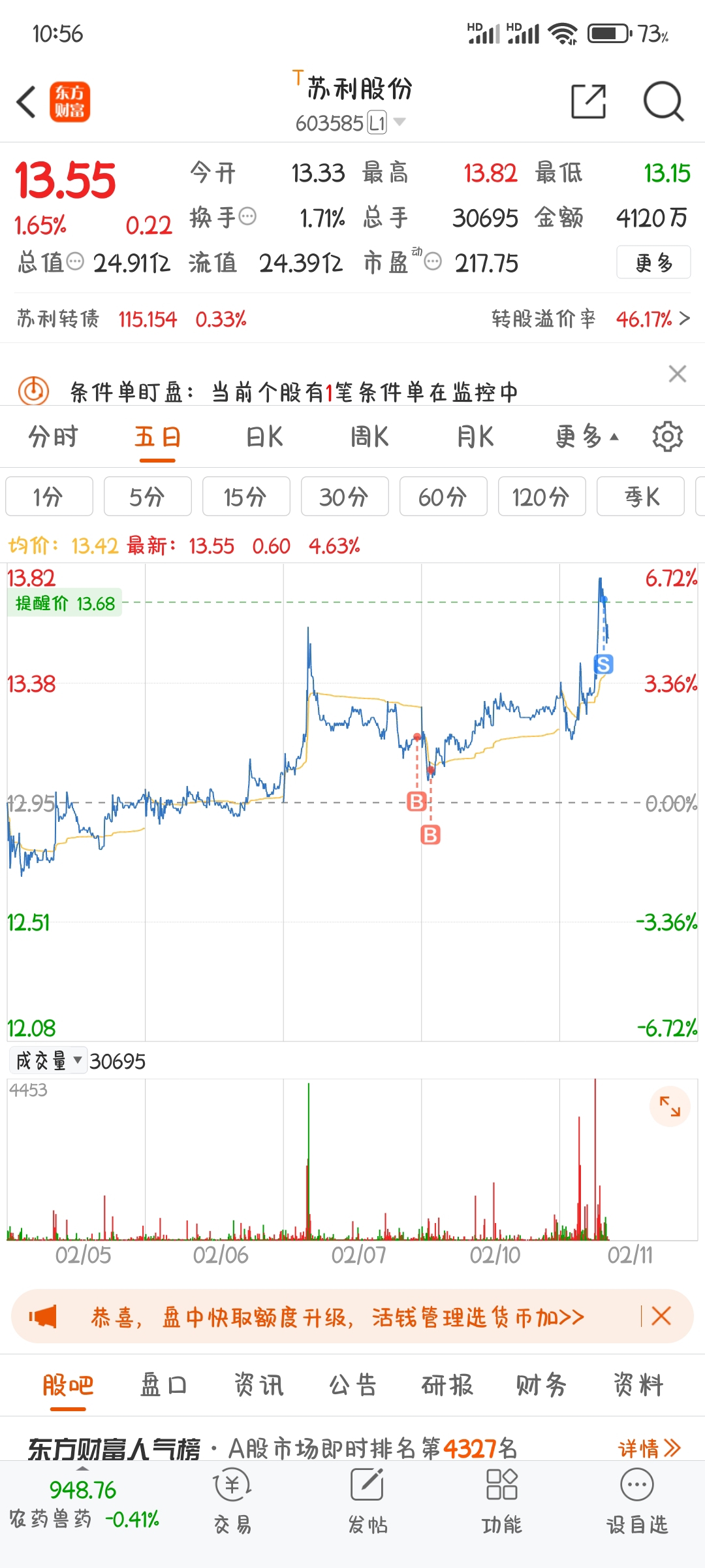 $苏利股份(SH603585)$ 星月封妖诀·闪星术,侥幸成功拿下苏利超短线!