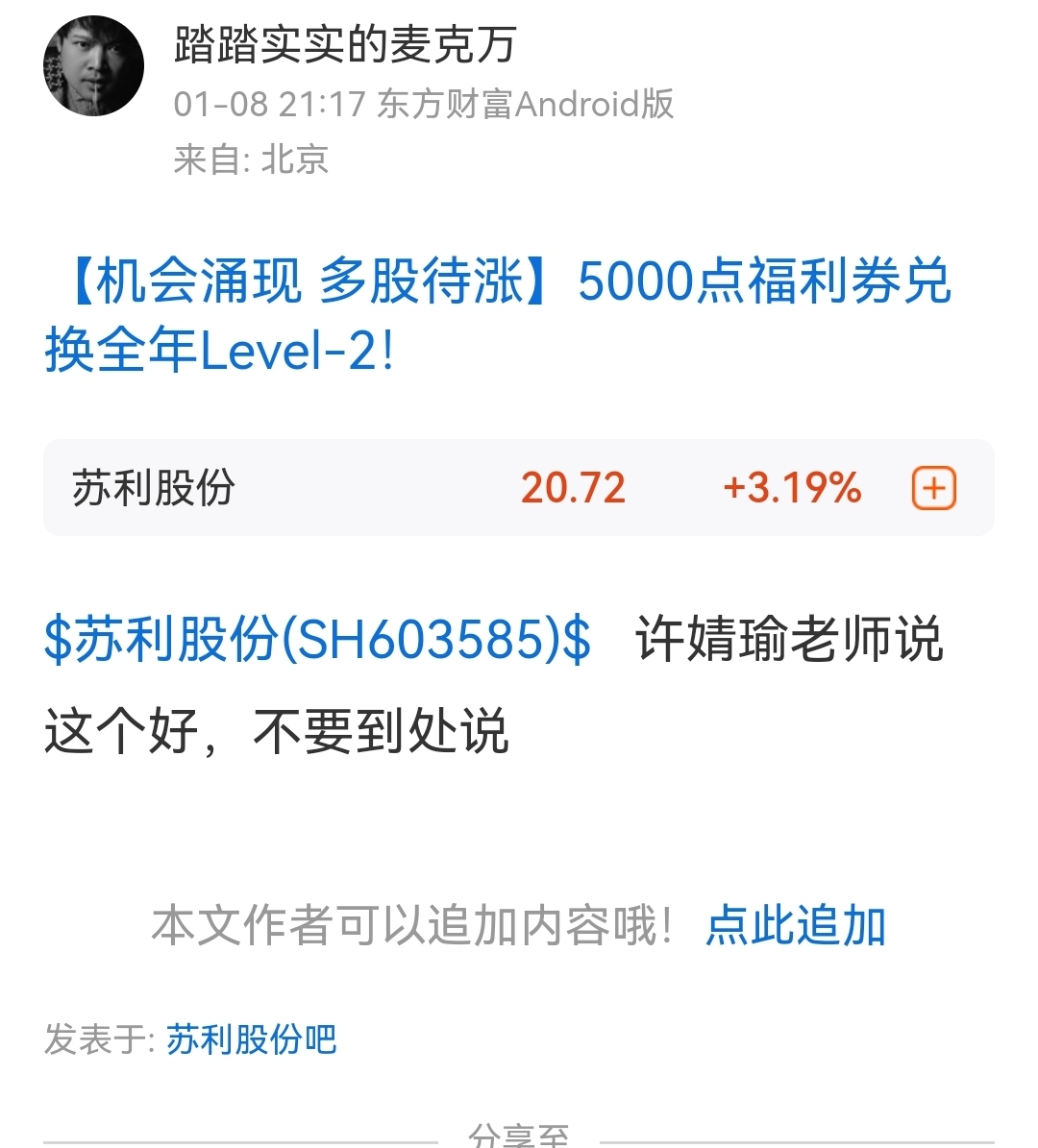 温馨提示: 1.根据《证券法》规定,禁止编造、传播虚假信息或者误导性信息,扰乱证券市场;2.用户在本社区发表的所有资料、言论等仅代表个人观点,与本网站立场无关,不对您构成任何投资建议。用户应基于自己的独立判断,自行决定证券投资并承担相应风险。《东方财富社区管理规定》