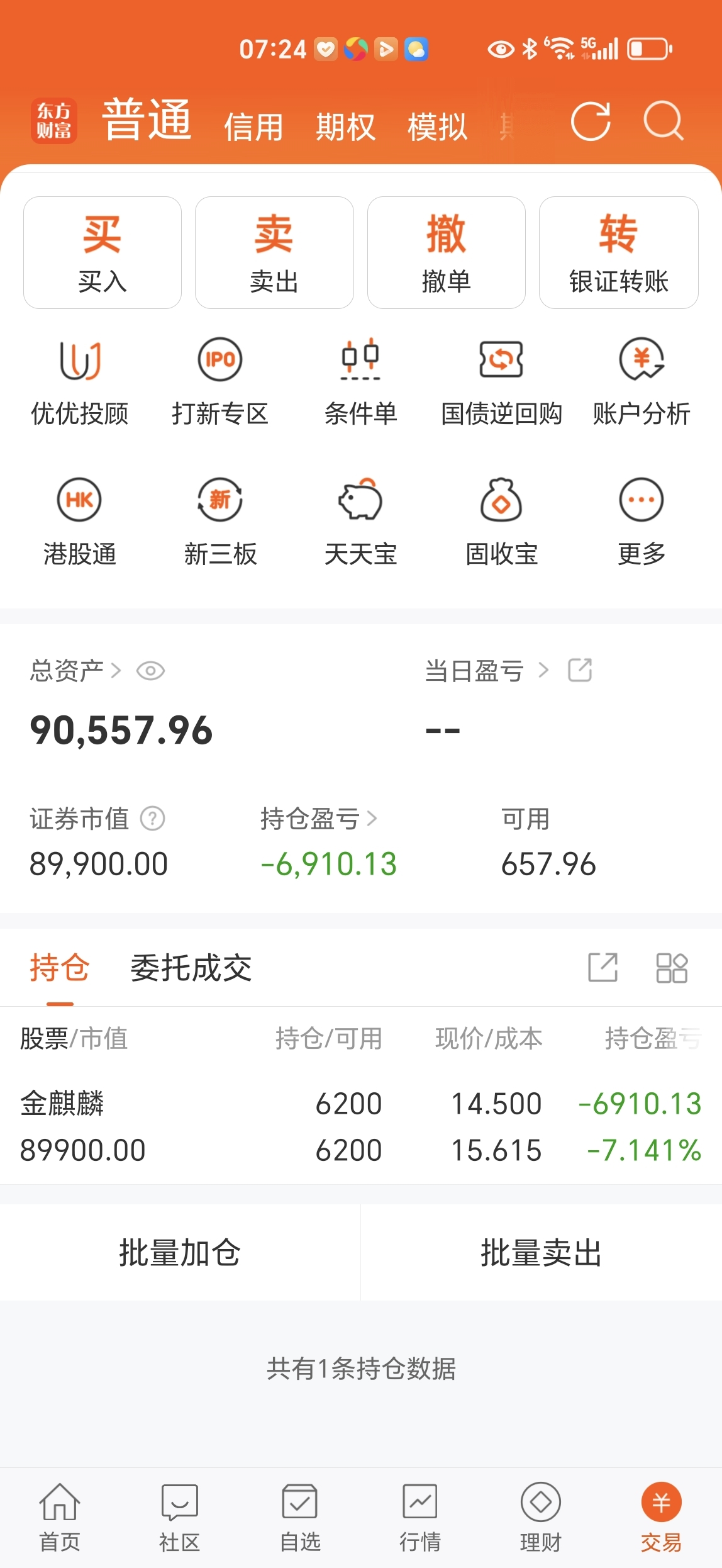 $金麒麟(SH603586)$ 1月22月早上7点27分总资产来到9万零5百左右以下图,今天继续拿住金麒麟仅供参考。