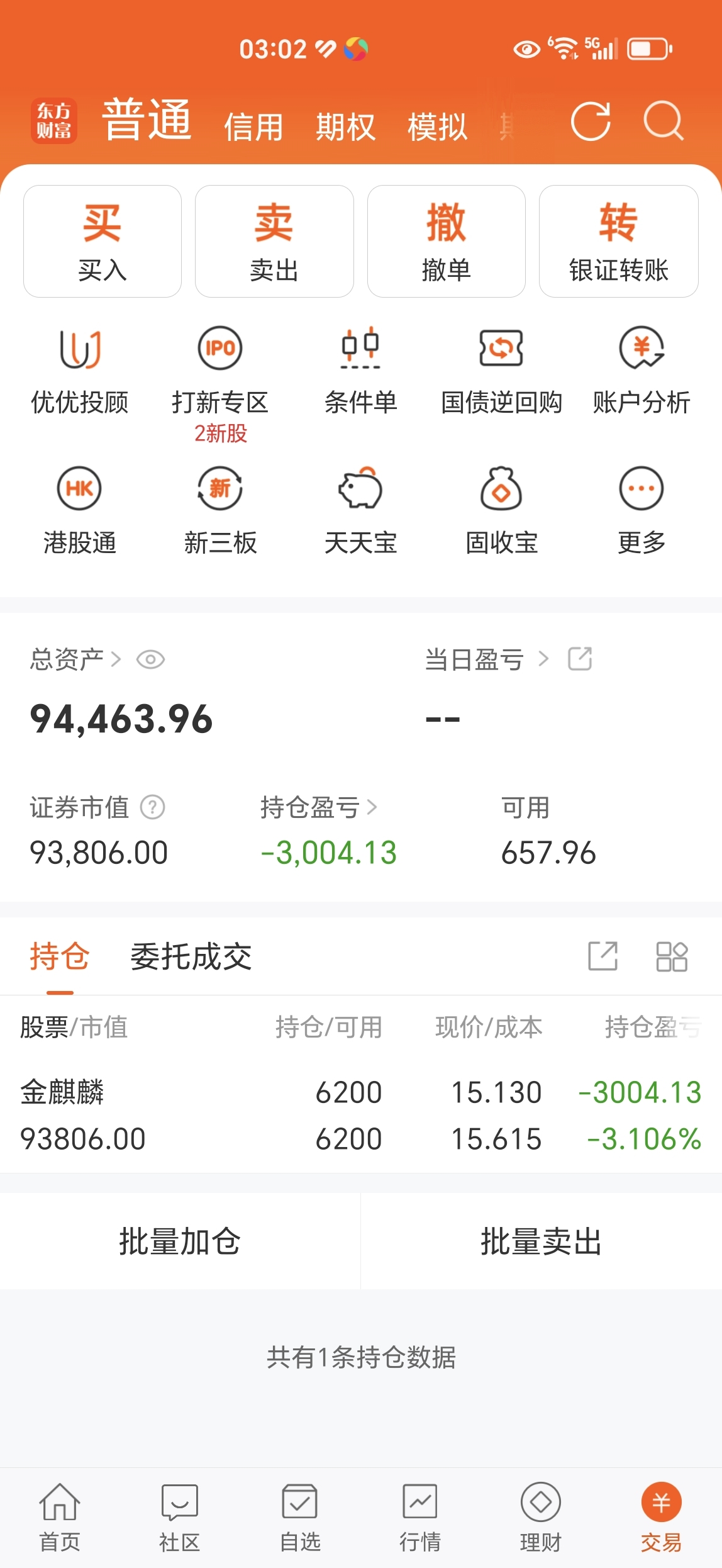 $金麒麟(SH603586)$ 3月11日凌晨3点零4分总资产来到9万4千4百元左右以下图,今天金麒麟如果上涨超5%以上就减仓,小涨和不涨就继续拿住金麒麟仅供参考。