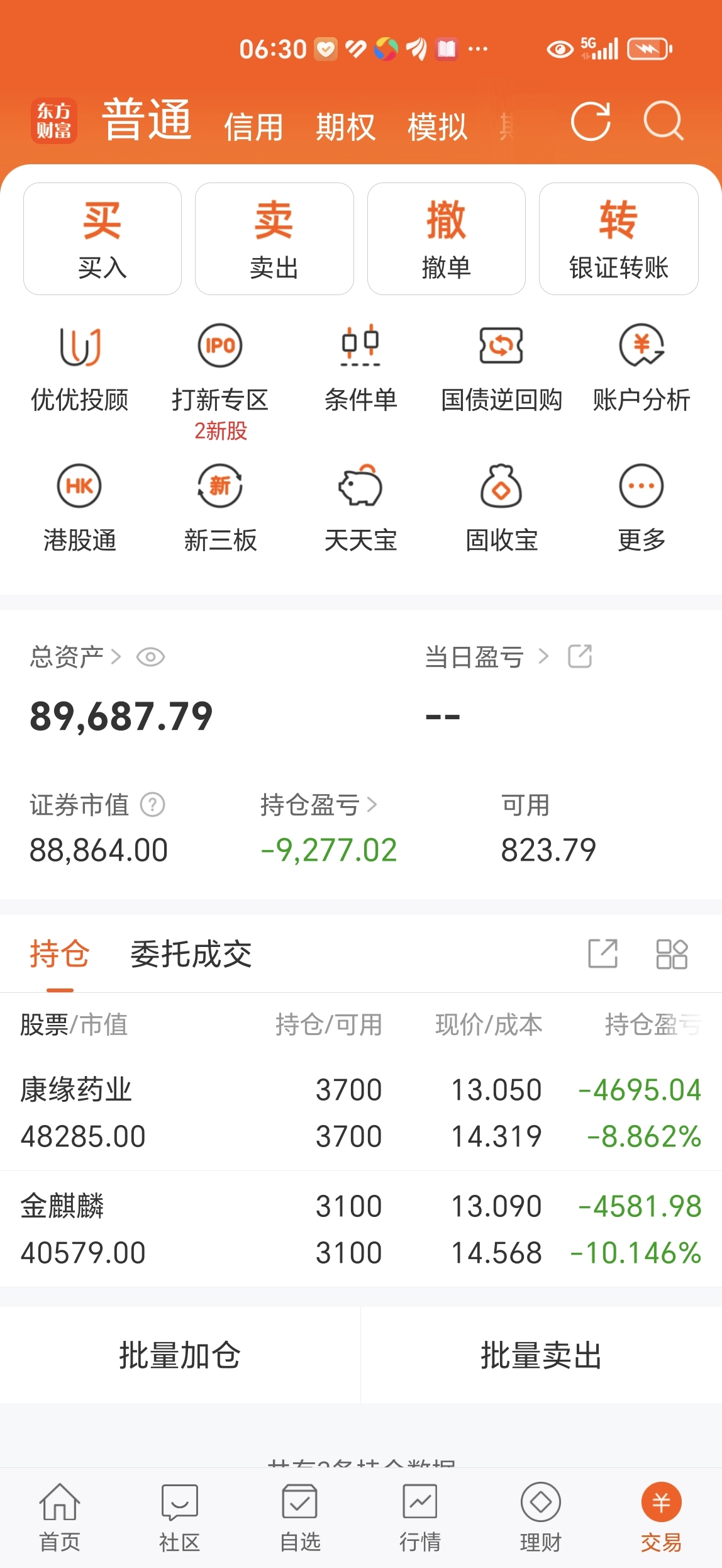 $金麒麟(SH603586)$ 4月15日早上6点32分总资产来到8万9千6百元左右以下图,今天继续拿住金麒麟仅供参考。