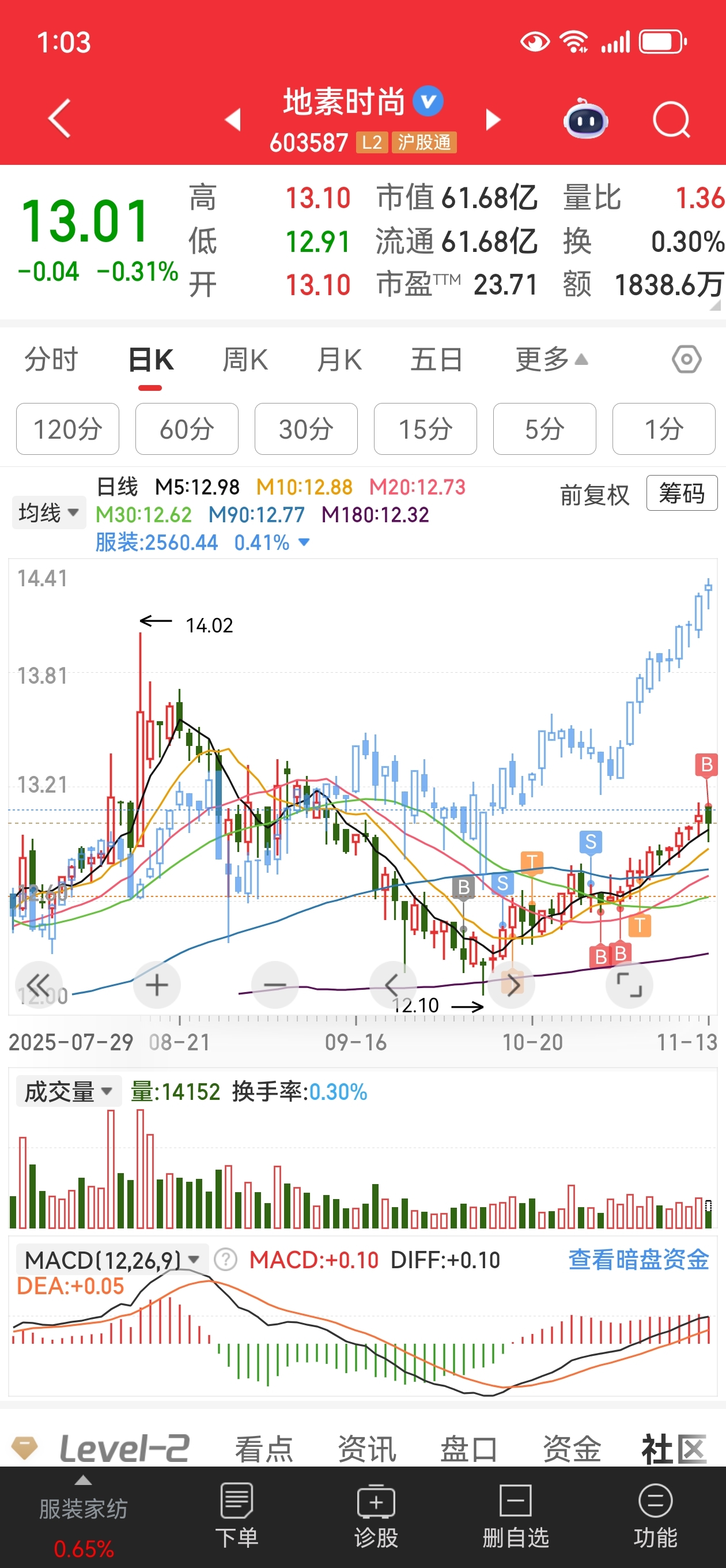 $地素时尚(SH603587)$ 落后板块太多了。加油干。