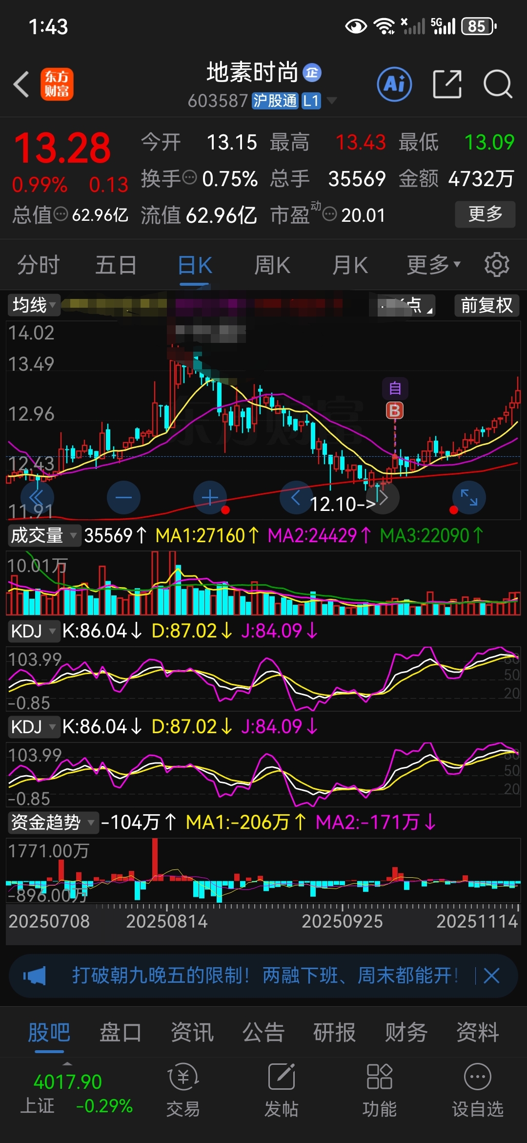 $地素时尚(SH603587)$ 拿一个月了