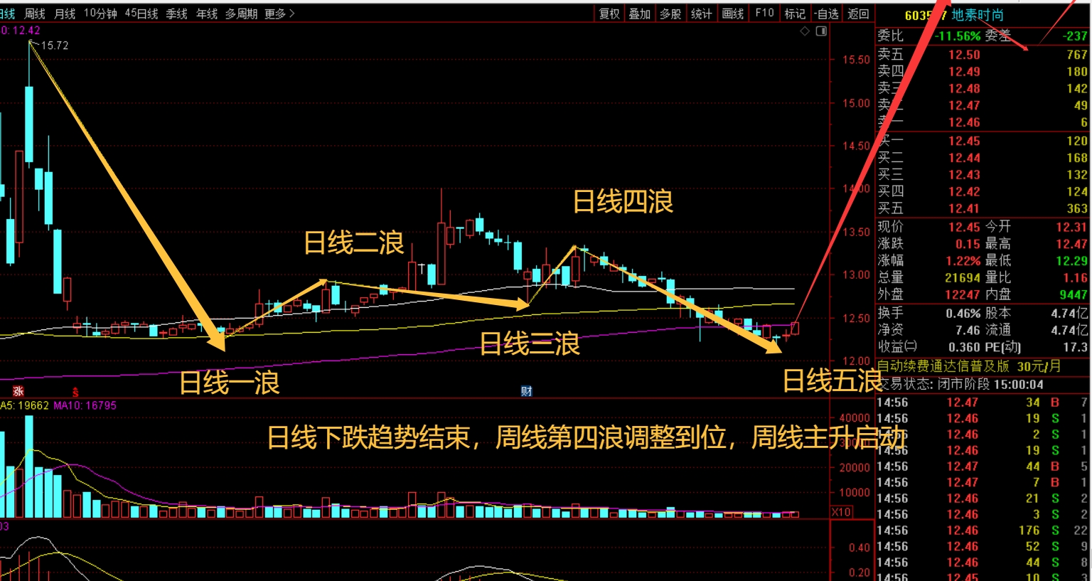 $地素时尚(SH603587)$ 周线第五浪补涨翻倍行情,目前日线的第二浪横盘震荡都没出现,拿稳了,日线卖点不出,周线第五浪不结束坚定持股