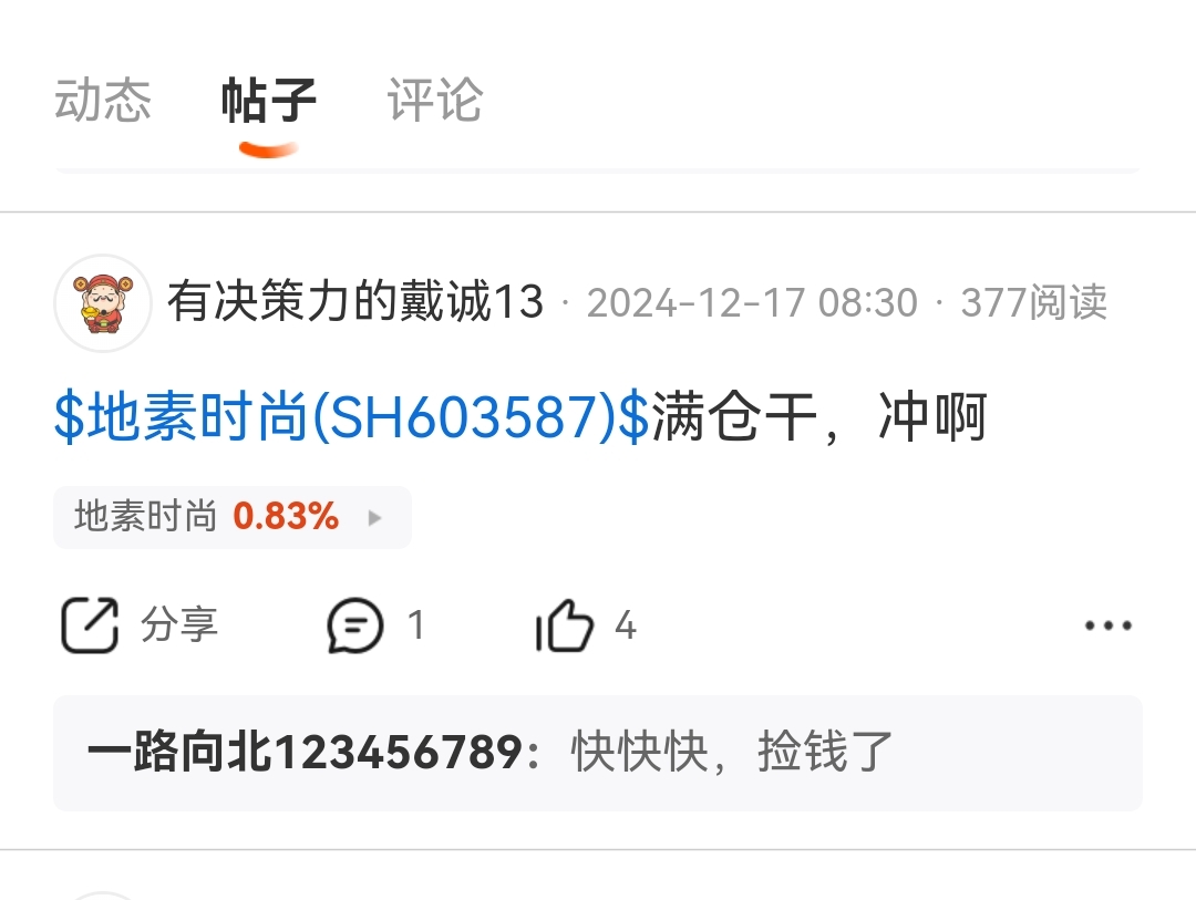 $地素时尚(SH603587)$ 季线底部中长线至少十倍涨幅,北向资金去年九月十元左右清仓卖出踏空,今年六月加入沪港通才能买,底部踏空后破坏投资环境没有必要,互联网不是没有记忆,底部唱空攻击人顶部唱多坚决抵制打击这种行为,周线第五浪主升今年补涨也至少翻倍,目前服装板块平均市盈率八十倍左右