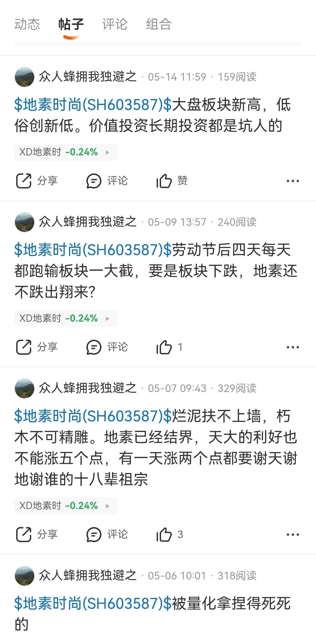 $地素时尚(SH603587)$ 绩优股女装龙头年利润稳定三亿以上,优秀的设计团队,双十一销量大增,投资卫哲基金获利五六亿以上,参股国联民生证券,和泡泡玛特合作业绩大增,戴维斯双击形成,卖在季线底部十元附近唱空攻击人的资金北向入场最后买入机会,季线底部中长线至少十倍涨幅,扩内需消费提振,服装板块进入月线上涨趋势