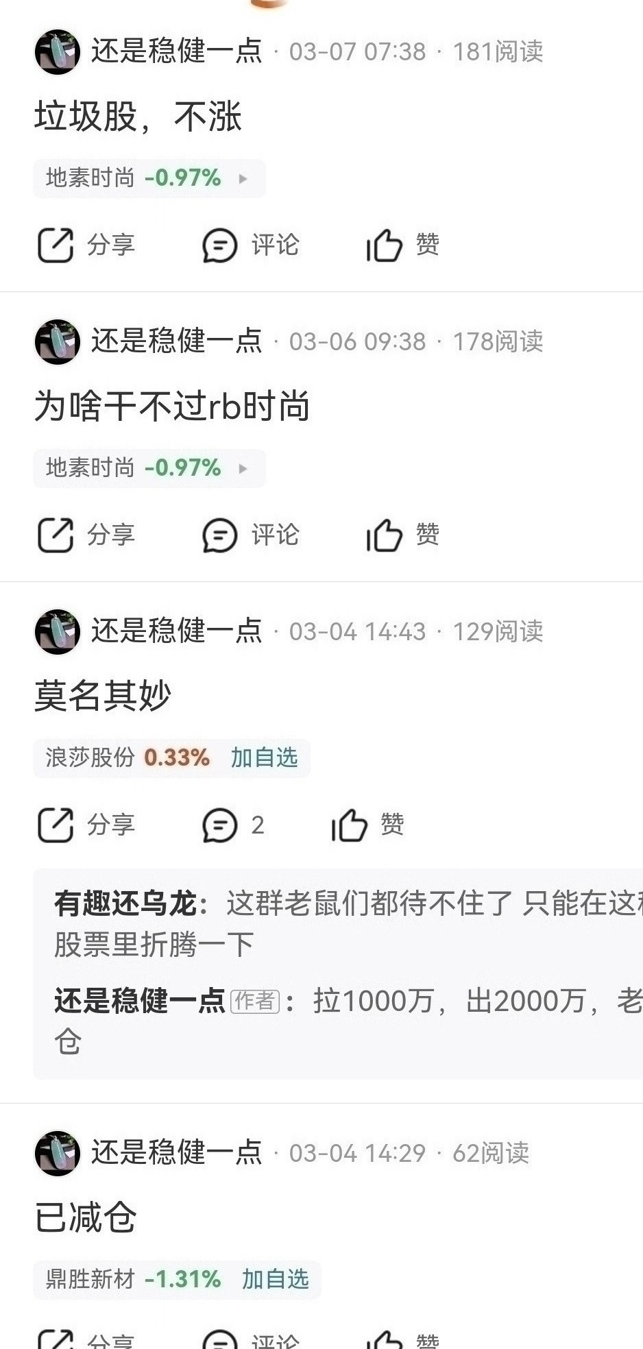 $地素时尚(SH603587)$ 首发经济谷子经济生肖马概念,年利润稳定三亿以上,现金资产三十多亿左右,季线底部绩优股,中长线至少十倍涨幅,北向资金去年九月十元附近清仓卖出踏空,底部踏空后唱空没有意义,股友0660l6v595也是山东ip还是稳健一点,破坏投资环境坚决抵制打击这种行为,周线第五浪主升补涨今年春节前补涨翻倍