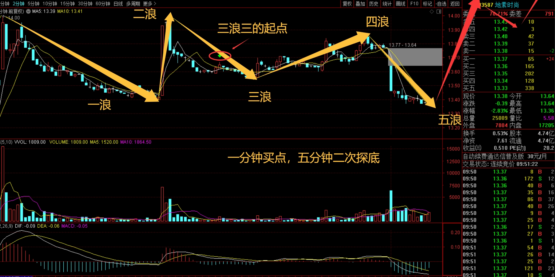 $地素时尚(SH603587)$ 一分钟买点出现,五分钟二次探底,三十分钟上涨趋势的起爆点出现,今天启动了