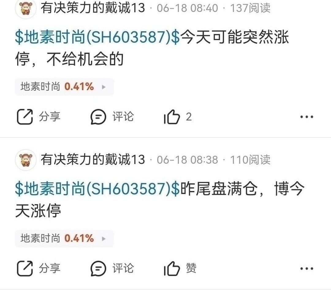 温馨提示: 1.根据《证券法》规定,禁止编造、传播虚假信息或者误导性信息,扰乱证券市场;2.用户在本社区发表的所有资料、言论等仅代表个人观点,与本网站立场无关,不对您构成任何投资建议。用户应基于自己的独立判断,自行决定证券投资并承担相应风险。《东方财富社区管理规定》
