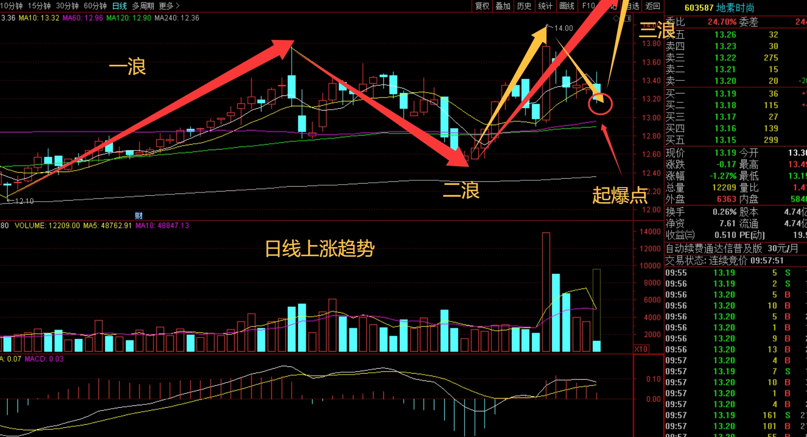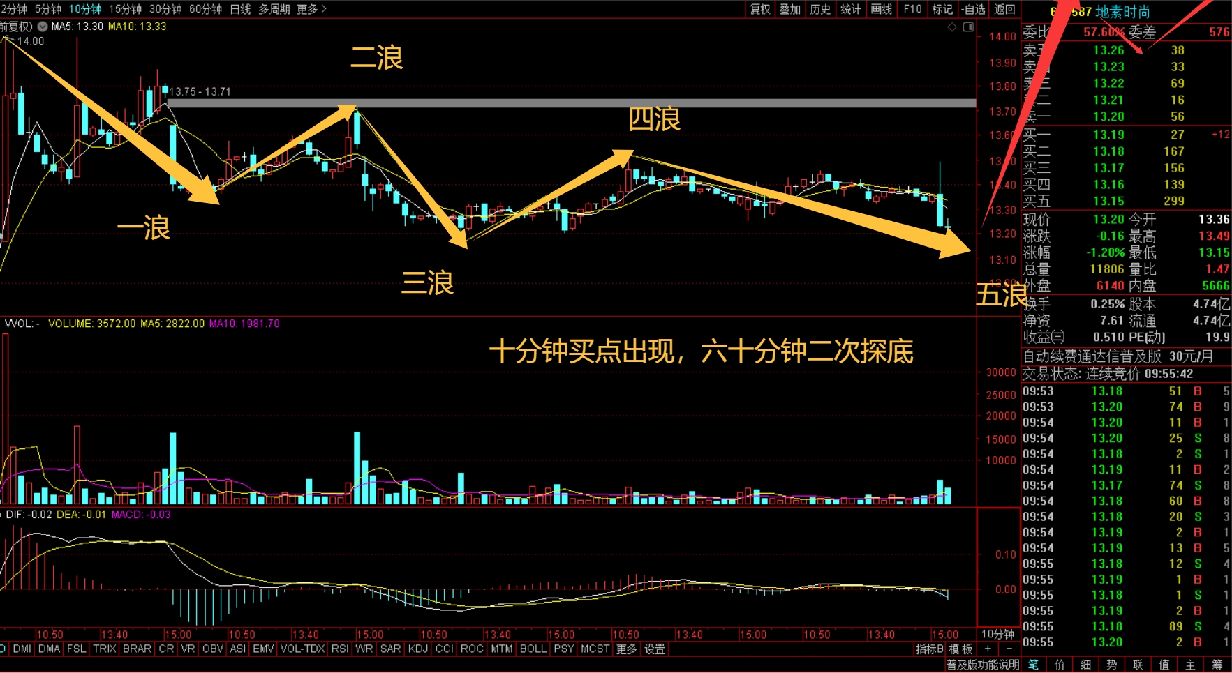 十分钟买点出现,六十分钟二次探底,日线上涨趋势三浪三启动,满仓布局了