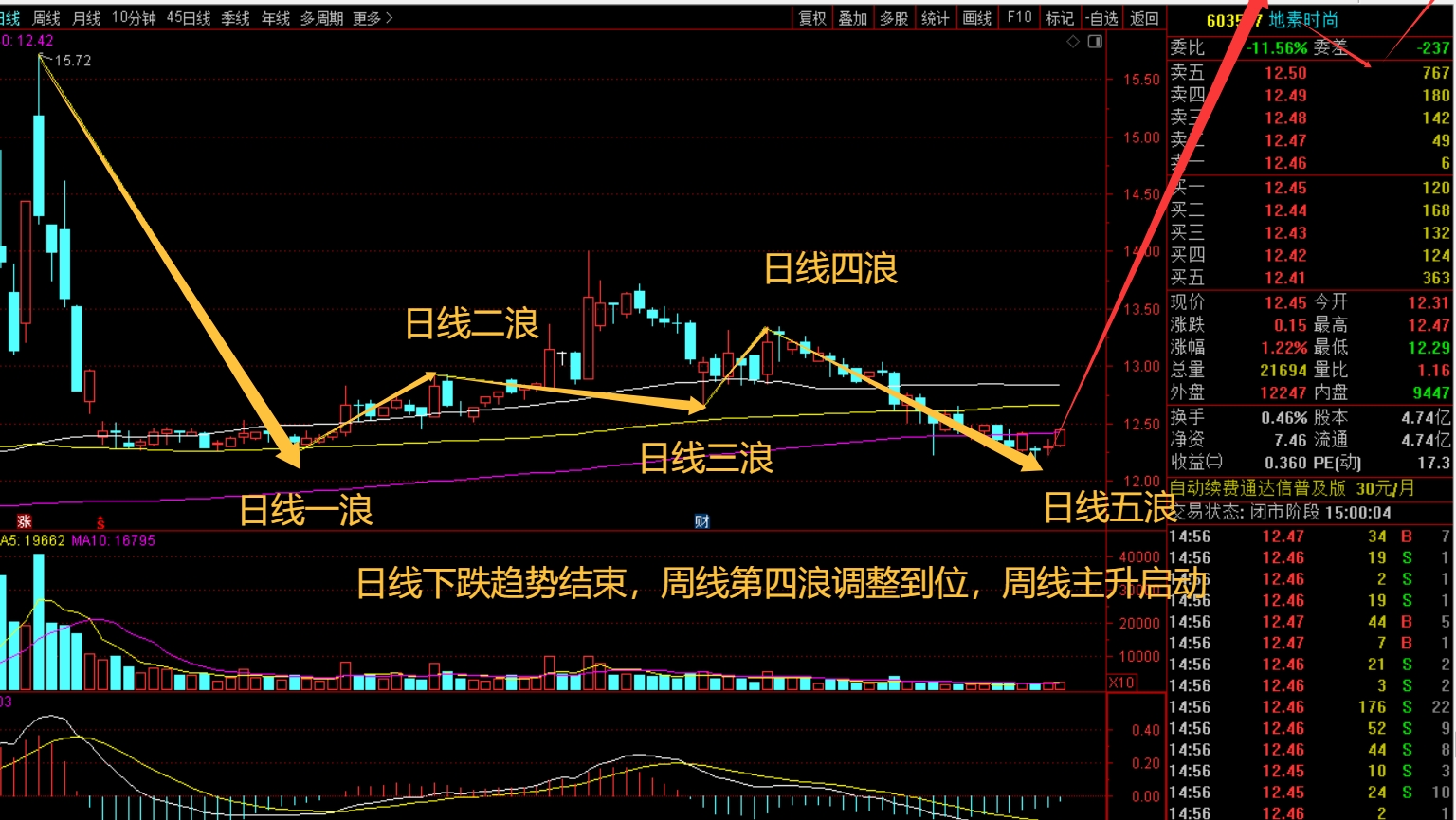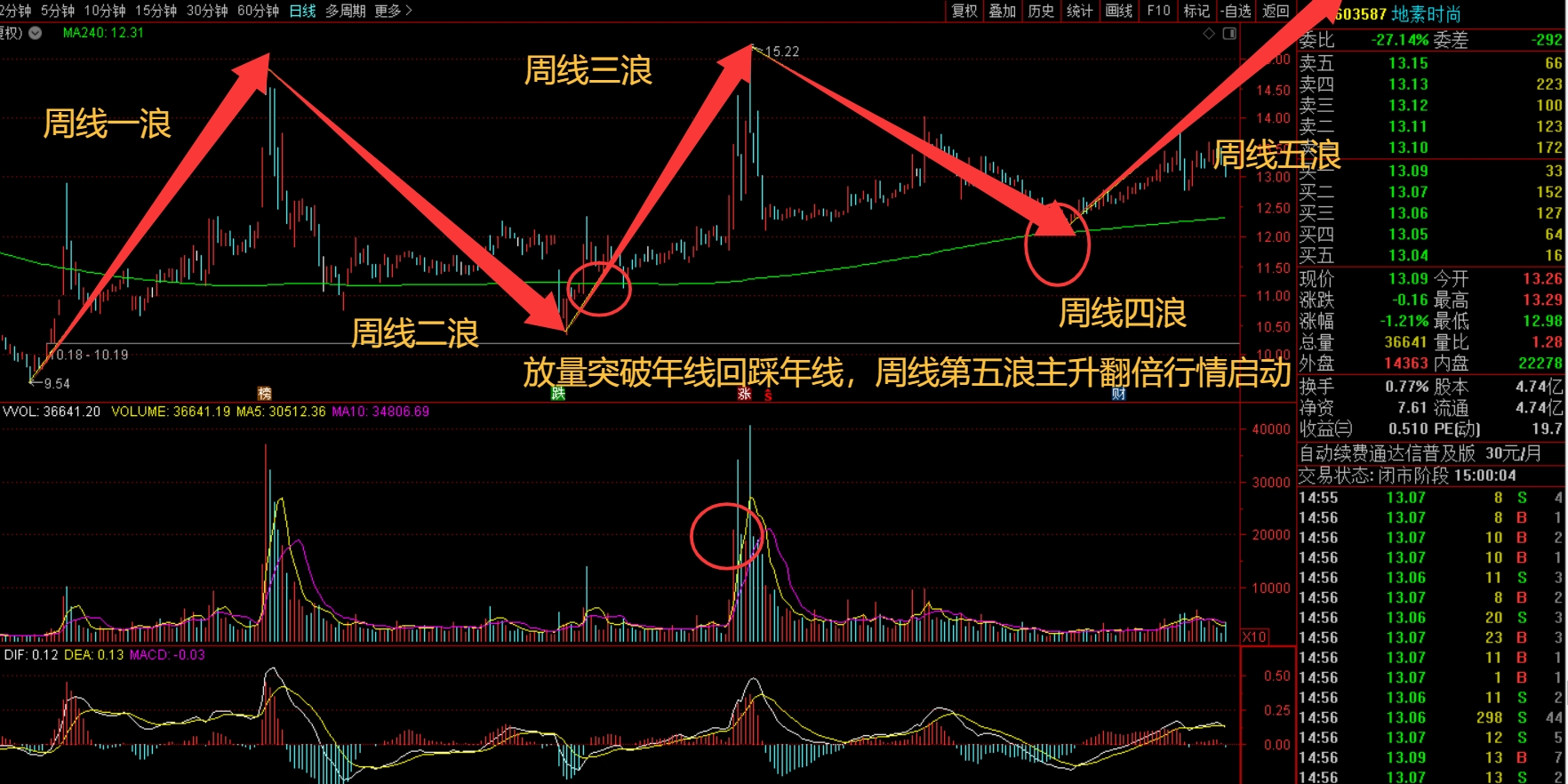 服装板块周线第五浪突破周线第三浪高点,地素周线第五浪必定是主升,目前服装板块平均