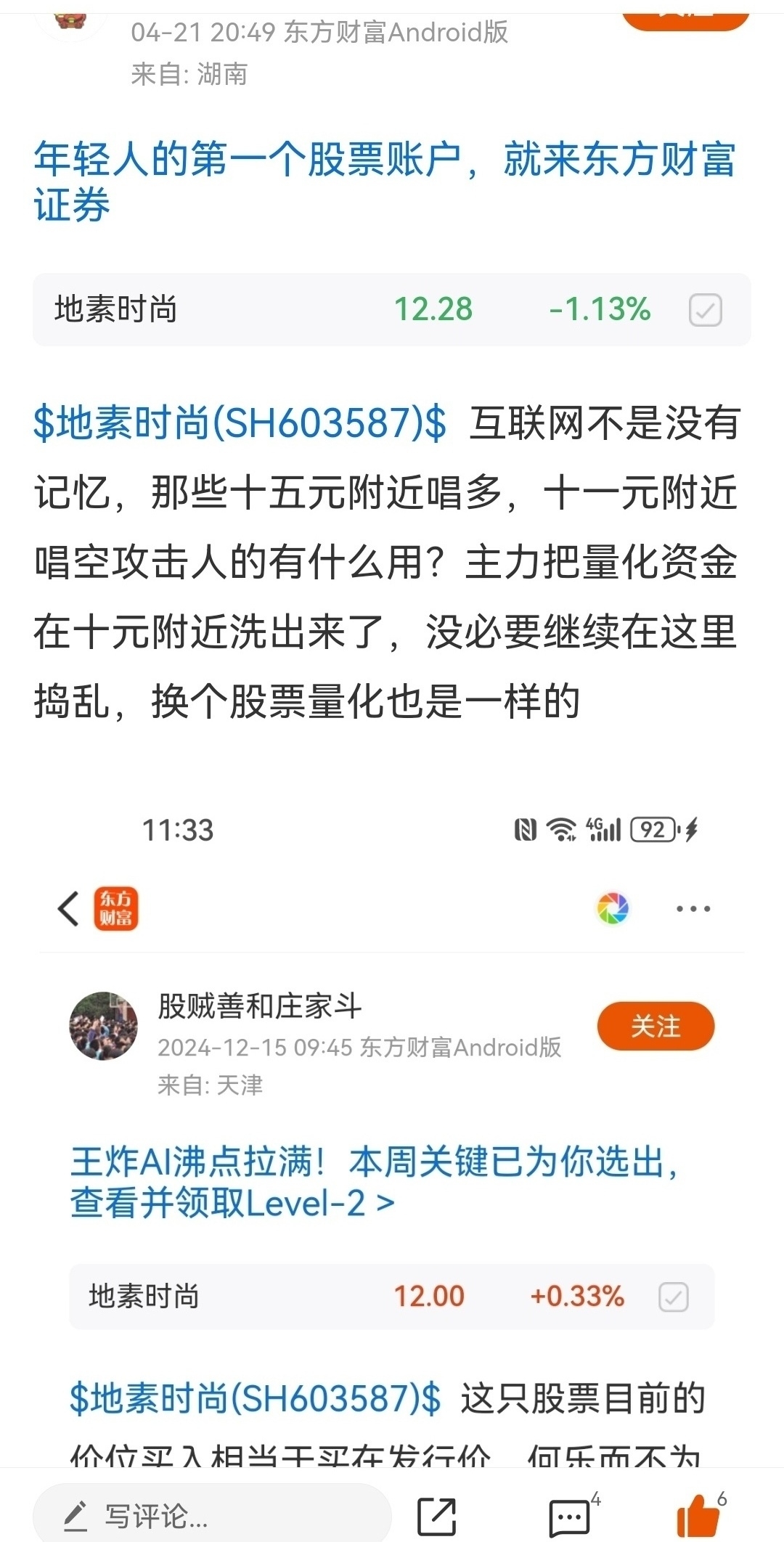 温馨提示: 1.根据《证券法》规定,禁止编造、传播虚假信息或者误导性信息,扰乱证券市场;2.用户在本社区发表的所有资料、言论等仅代表个人观点,与本网站立场无关,不对您构成任何投资建议。用户应基于自己的独立判断,自行决定证券投资并承担相应风险。《东方财富社区管理规定》
