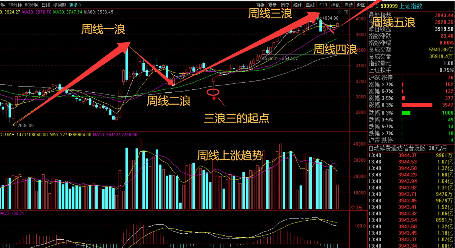 大盘今天继续放量,周线第五浪进入加速阶段,绩优低位股补涨行情蓄势待发,今年周线第
